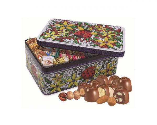 BOMBONES DE CHOCOLATE (65%) surtidos 7 variedades: con avellana, de crema de avellana, moca, chocolate blanco y arroz inflado, de almendras, crema catalana y crujiente con arroz inflado.